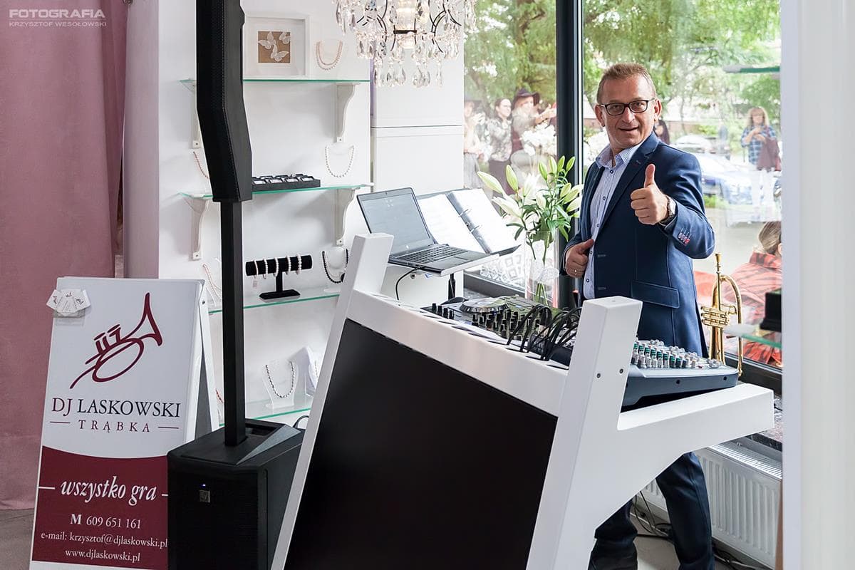 Krzysztof Laskowski - profesjonalny DJ, wodzirej, trębacz i wokalista zadba o odpowiednią muzykę, nastrój i niezapomniane przeżycia podczas Twojej uroczystości. DJ Laskowski to nie zwykły didżej, to zawodowy muzyk, który zagra dodatkowo na kilku instrumentach i poprowadzi Waszą imprezę wspólnie z innymi muzykami. Kilkaset zrealizowanych wesel, imprez klubowych i muzycznych eventów oraz tysiące zadowolonych gości to gwarancja, że Wasze wesele, urodziny czy studniówka będzie takie jak sobie wymarzyliście.